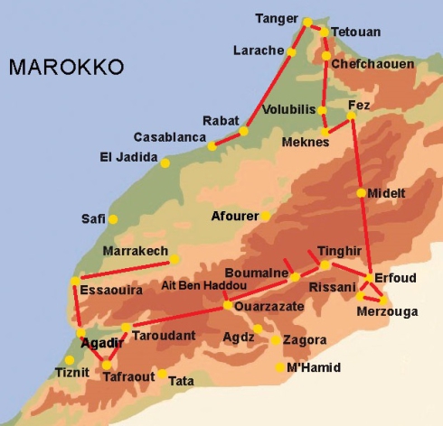 Im Norden erleben Sie die alten Häfen der Seefahrer, Tanger „das Tor Afrikas“ und das malerische Rifgebirge. Baudenkmäler und Kunstschätze der Königsstädte sowie gewaltige Wehrdörfer aus Stampflehm und wunderschöne Kasbahs werden Sie auf dieser Reise begeistern. Der Süden wartet auf mit mächtigen Sanddünen, bizarrer Wüstenlandschaft und grandiosen Felsformationen.